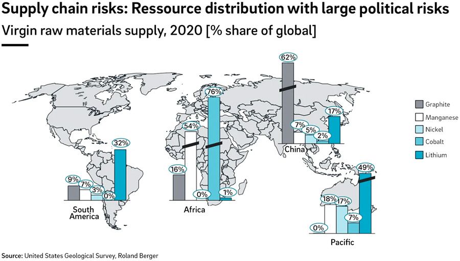 “At the production level, an integrated approach between metallurgy and chemistry can help reduce costs,” Bernhart added. “More regionalisation and co-location for multiple steps in battery manufacturing can also reduce geopolitical and ESG risks. Recycling will play an increasingly important role from the end of the decade.”
