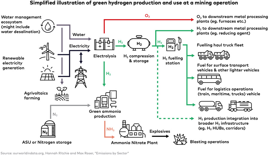 At the same time, the creation of green hydrogen is estimated to account for between 12% and 20% of global energy demand by 2050. This presents substantial additional business opportunities for mining companies willing to engage.
